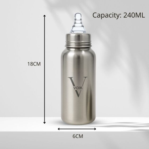 Be the first to review “VOIK Stainless Steel Baby Feeding Bottle 240ml | 100% Steel | for 3+ Months Babies”