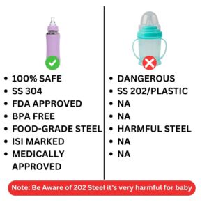 • ISI approved SS 304 food-grade stainless steel for safe, hygienic, and baby-friendly feeding