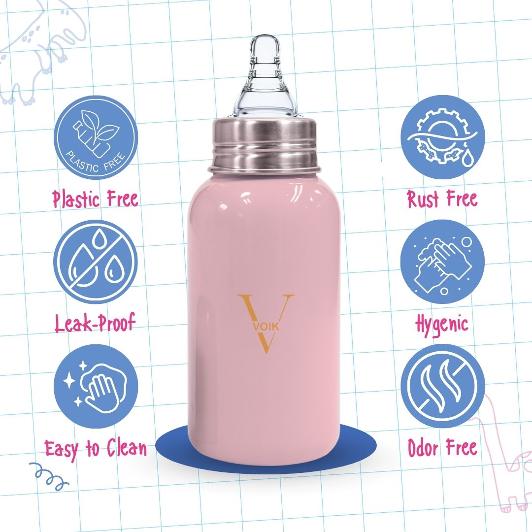 VOIK Vega Soft Stainless Steel Feeding Bottle for Newborn Baby | Premium Milk Bottle 300ml